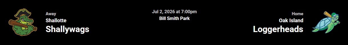 Join the Oak Island Loggerheads on July 2 at Bill Smith Park as they face off against the Shallotte Shallywags for an exciting night of summer collegiate baseball!